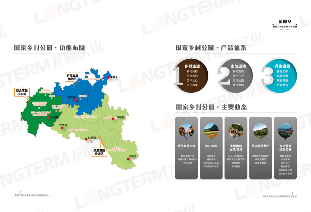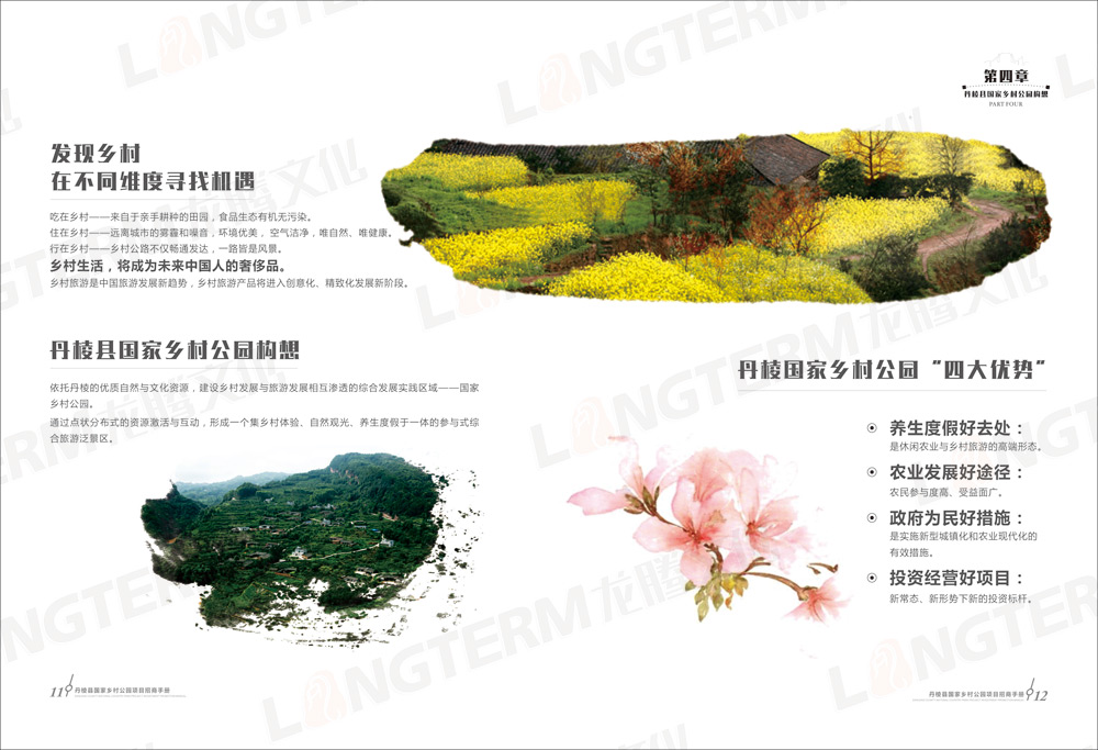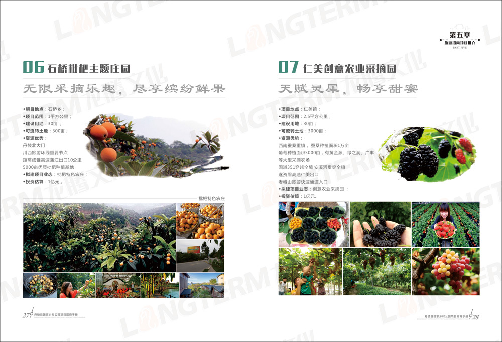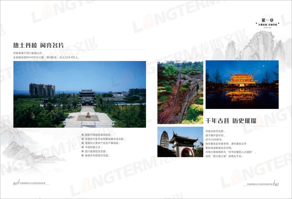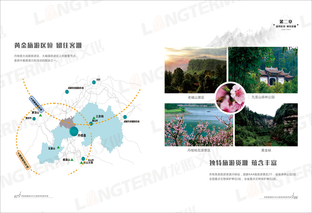 招商画册包含“大雅家园 美丽丹棱”、“优势区位 独特资源”、“政策优惠 服务贴心”、“丹棱县国家乡村公园构想”、“旅游招商项目推介”等共5大篇章,除了设计和印刷招商画册外,还在画册的基础上制作了H5推广页面。龙腾文化是一家综合服务机构,善于利用各种资源,为客户开拓更广阔的营销渠道。